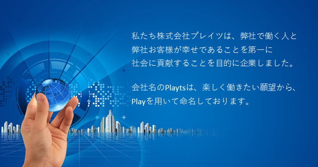 トップページ 2025.08.062025.08.28 私たち株式会社プレイツは、弊社で働く人と弊社お客様が幸せであることを第一に社会に貢献することを目的に企業しました。会社名のPlaytsは、楽しく働きたい願望から、Playを用いて命名しております。 システム開発事業 弊社は、お客様の開発案件に関し、SESにて開発支援を行っています。お客様の高度な現場での作業他、テレワークによる自宅での作業など、多種多様な案件にて技術者が活躍中です。 システム開発の詳細 コンタクトはこちら まつ毛エクステンション事業 (関連企業Leema) 関連会社Leemaでは、完全個室にてまつ毛エクステ―ションサービスを行っております。美容師資格を持つ施術者が、安心丁寧に施術いたします。 まつ毛エクステーションに関する情報 コンタクトはこちら